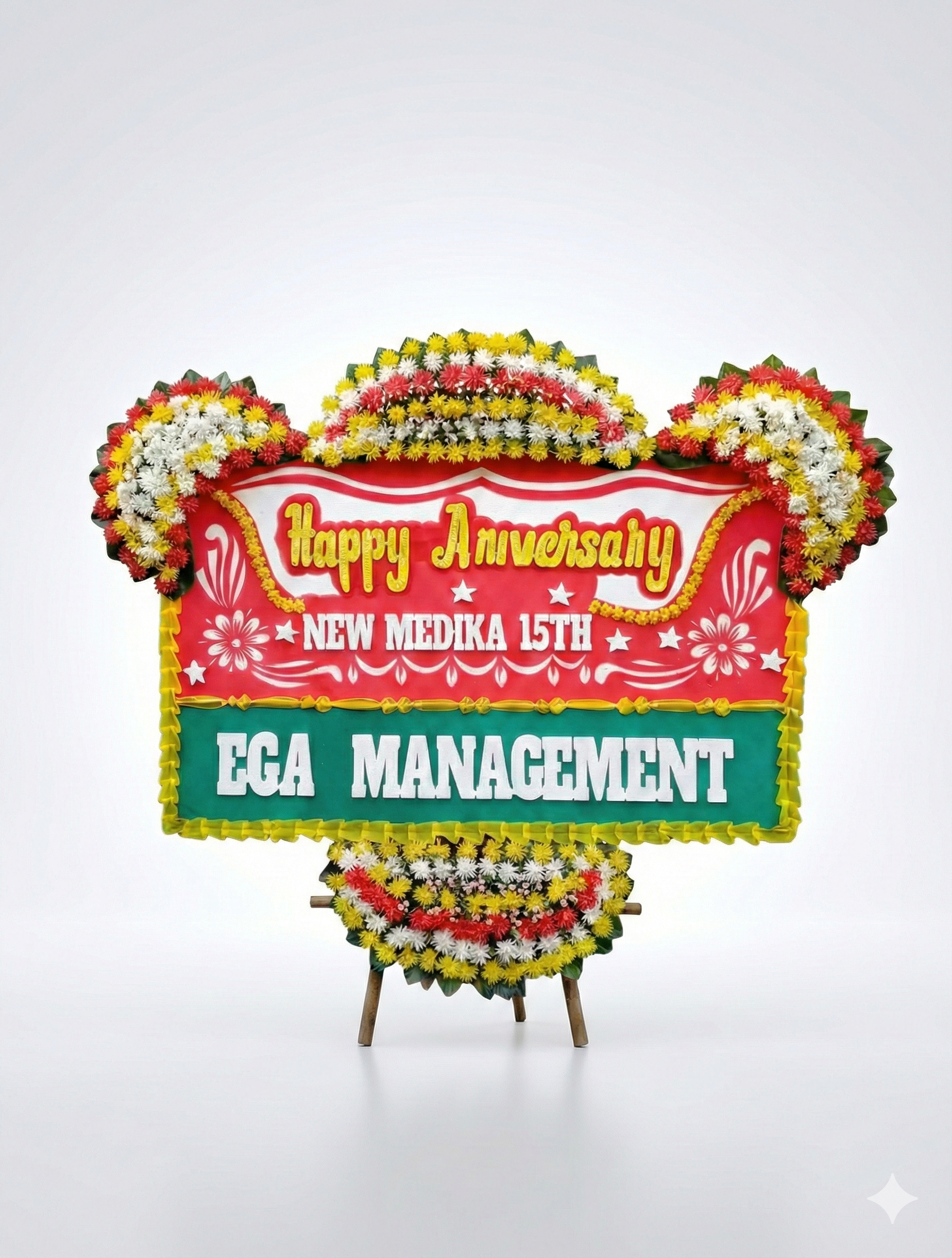 Tunjukkan apresiasi dan dukungan Anda atas pencapaian luar biasa rekan bisnis atau instansi dengan Bunga Papan Anniversary Seri Corporate Celebration. Dengan kombinasi warna merah yang berani dan energik, papan ini memancarkan semangat kesuksesan dan kemajuan.